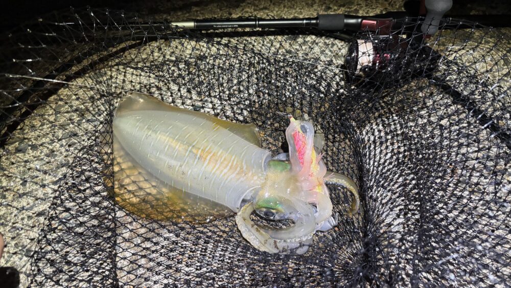 その後も連続して、20cmほどのアオリイカが3匹ほど釣れました!